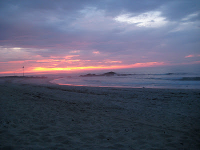 Today I spent my first sunrise of the year outside. I’m not exactly sure what made me actually do it as opposed to the other times when I’ve yanked down the shade, ignored alarms and happily returned to slumber, but I think I picked a good spot to begin. I could hear the waves before I left my bedroom and I didn’t really know what to expect. When I first saw it, it was only a strip of pinks and oranges, and I thought, breath-taking. Little did I know it was just beginning. I couldn’t shake my companion into the waking world so I braved the beach bugs alone. I figured I had to get at least a couple authentic shots without the give away glass reflection in the corner of the photo.